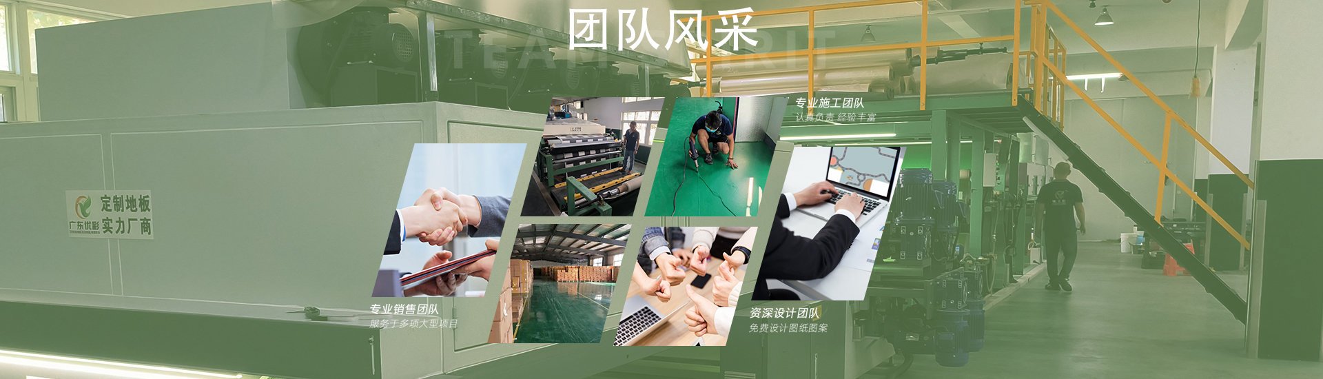 公司拥有非常专业的研发设计团队,能满足客户对产品创新及优化的需求,有经验丰富的生产施工团队、全新配套的流水线生产设备、高速高清工业印花机多台、水性无异味无污染高速复合机、UV辊涂生产线等;我们致力于完善复合型定制地板产品质量,高效高质量服务于广大客户。