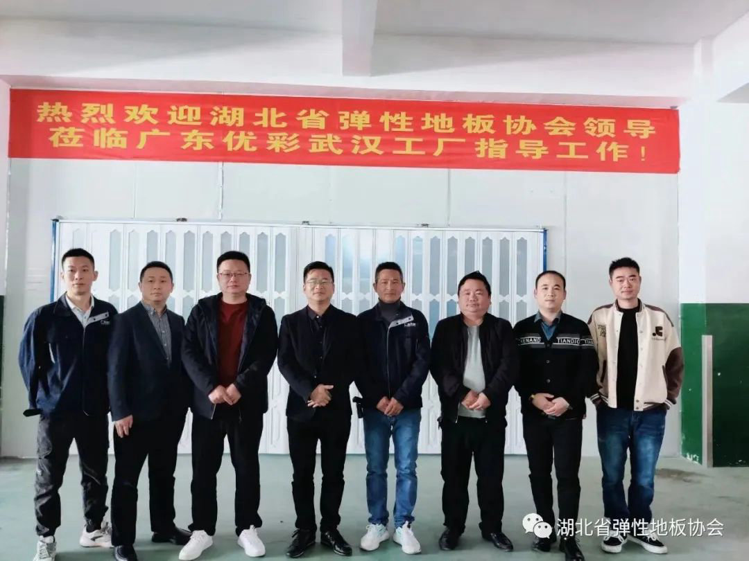11月23日,湖北省弹性地板协会领导走访了位于武汉市东西湖区的会员单位--广东优彩塑胶地板有限公司武汉分公司。参加走访的人员有会长段建刚、秘书长郑江、监事长彭丰来、副会长戴晖、副会长曾利等人。领导们一起参观了优彩公司的生产车间,观摩了定制塑胶地板的生产工艺和流程,并与广东优彩公司武汉分公司的负责人赵文明等人进行了深入地交流,对优彩公司的产品种类、产品设计、产品工艺环保和市场未来发展空间等方面做了进一步地了解。